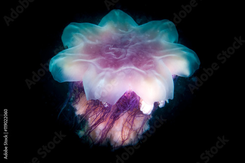 © kondratuk, Obraz premium Cyanea jellyfish swims in the dark
