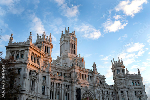 Obraz premium Cybele palace architecture with crescent moon and light clouds