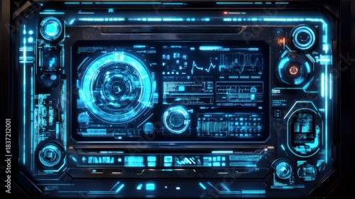Fototapeta premium Cyber AI-powered neural interface scanning data Ultra