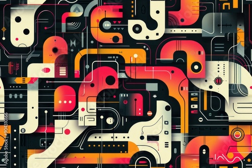 Obraz premium Cyber circuit retro style