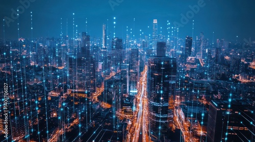 © Zidan, Fototapeta premium Cyber City: A Digital Metropolis at Night
