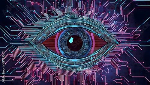 © Digital Dreams Studi, Obraz premium Cyber Eye with Circuit Lines