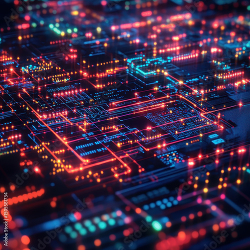 © sitthilath, Obraz premium Cyber grid with digital circuit lines