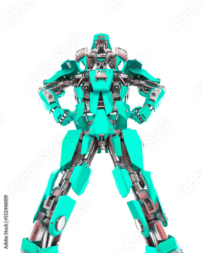 © DM7, Fototapeta premium cyber mechis is doing a power pose bottom view