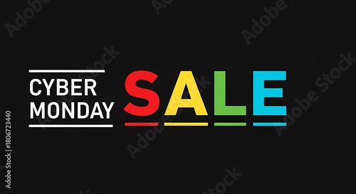 Obraz premium Cyber monday sale banner with colorful text on black background isolated on white background