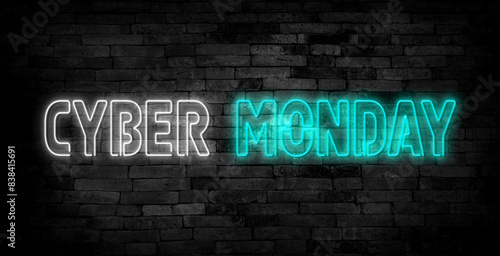 © Philip, Obraz premium Cyber monday sale neon signs vector. Design template neon sign