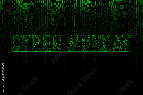 Fototapeta premium Cyber monday text on a green binary matrix background.