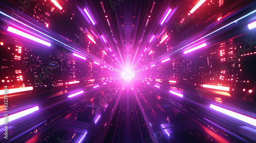 Obraz premium Cyber neon lights forming a futuristic pattern with a vibrant purple glow