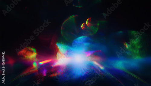 Fototapeta premium Cyber Neon Overlay Effect. Abstract, Fluorescent, Futuristic Light Movement Shift, Flash, Bokeh, Spots. Aesthetic Fine Art Background for Design.