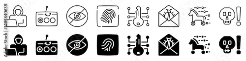 © LOBSTER LARRY, Obraz premium Cyber security and hacking icon. Including hacker set. Linear and silhouette style.