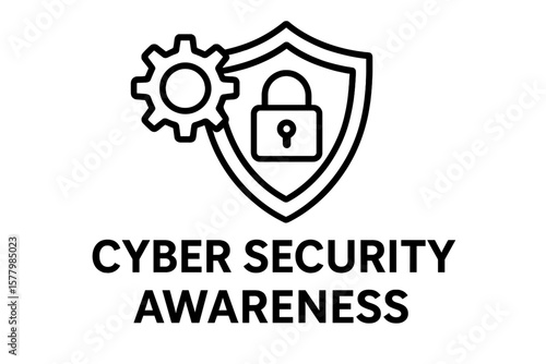 © Lena, Obraz premium Cyber security awareness concept. Data protection technology icon. Digital privacy and internet safety. Shield, lock and gear sign for information security systems vector.