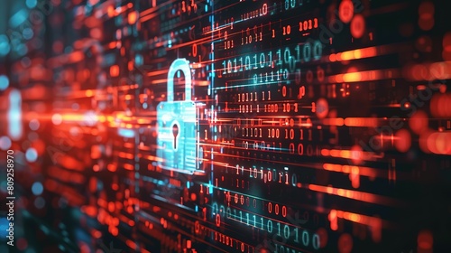 Obraz premium Cyber security concept. digital padlock on abstract cyber security with binary code