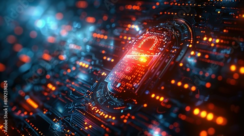 Obraz premium Cyber security concept. digital padlock on abstract cyber security with...