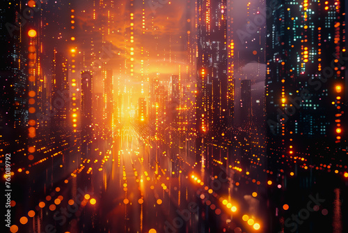 Obraz premium cyber security futuristic, dynamic data stream digital binary big data, and...