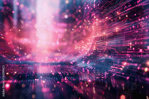 Obraz premium cyber security futuristic, dynamic data stream digital binary big data, and...