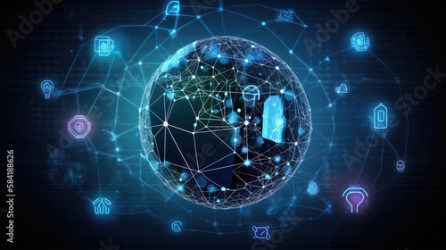 Obraz premium Cyber Security including a brain and a globe. Generative AI image