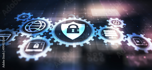 © WrightStudio, Obraz premium Cyber security, Information privacy, Data protection. Internet and technology concept on virtual screen.