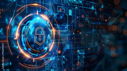 Obraz premium Cyber Security Lock on Digital Circuit Board