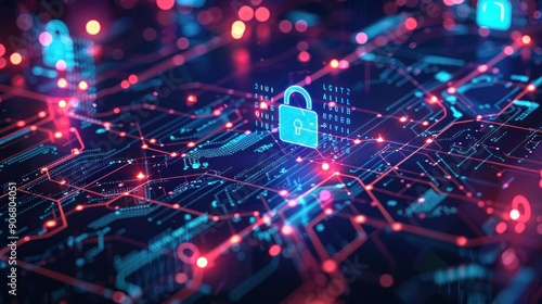 Obraz premium Cyber Security Lock on Digital Circuitry Background