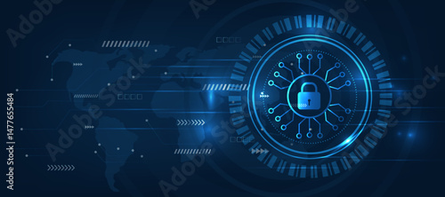 © biswas, Obraz premium cyber security lock protection firewall digital concept