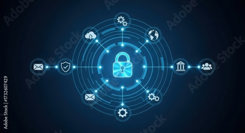 © TechNova Graphics, Obraz premium Cyber security padlock with connected icons digital protection illustration netwo