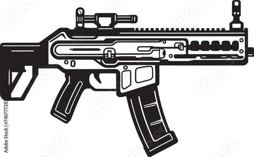 © BABBAN, Naklejka premium Cybernetic Cannon Vector Weapon Design Techno Blaster Black Vector Logo