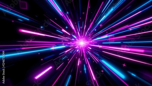 Obraz premium Cybernetic Cascade, Abstract Neon Light Rays Converging on Central Point