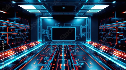 Fototapeta premium Cybernetic Corridor: Glowing Neon Lines and Futuristic Design