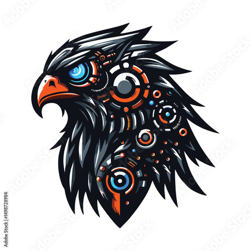 © Dhika, Obraz premium Cybernetic Falcon Vector – Modern Tech Warrior Bird Icon