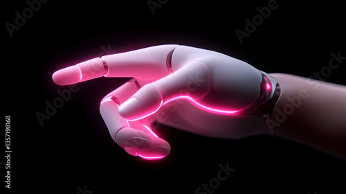 Obraz premium Cybernetic Hand with Pink Neon Lights in Futuristic Setting