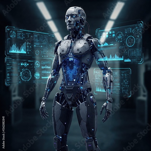 Naklejka premium Cybernetic Humanoid with Glowing Circuits and Futuristic Armor 4K HD High...