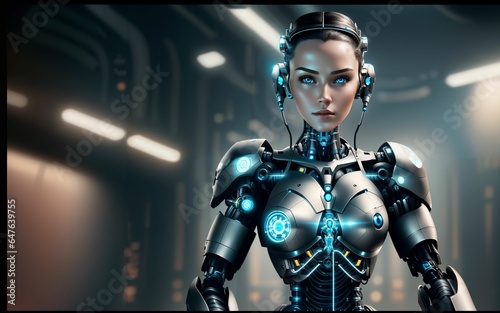 © slumart, Naklejka premium Cybernetic Realism The Intricate Vision of a Futuristic Cyborg ai generated