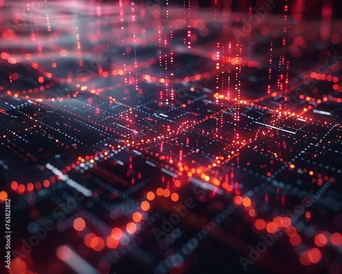 © Thanadol, Obraz premium Cybernetic stock market futuristic finance closeup holographic charts sharp focus