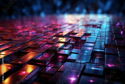 © SANGHYUN, Obraz premium Cyberpac background, lines, abstract, magenta and cyan colors. AI generative