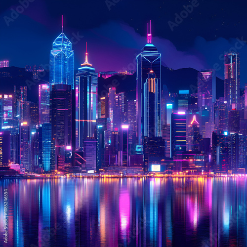 © ชลธาร จันทร์หอม, Fototapeta premium Cyberpunk City Nightscape
