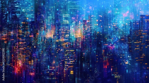 © abdul kahfi, Fototapeta premium Cyberpunk Cityscape: A Digital Metropolis at Night