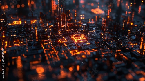 © slamet, Obraz premium Cyberpunk Cityscape: A Digital Metropolis Glowing with Neon Lights
