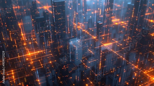 Obraz premium Cyberpunk Cityscape: Digital Network