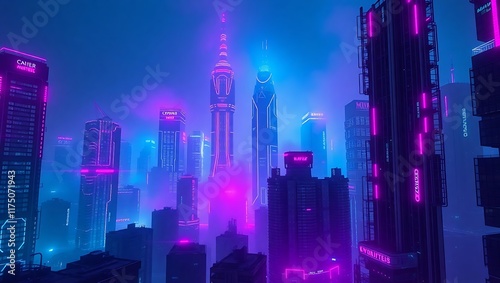 Fototapeta premium Cyberpunk Cityscape: Neon Glow and Futuristic Towers