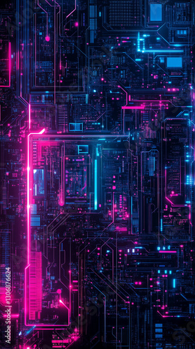 Obraz premium cyberpunk cityscape, neon glow, dark futuristic background, cyber vibes,...