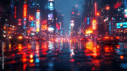 © atul _art, Fototapeta premium Cyberpunk Cityscape: Neon Rain