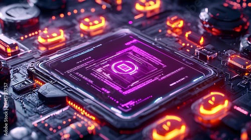 Fototapeta premium cyberpunk cpu neon tech chipboard - cyberpunk aesthetics