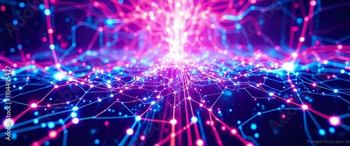 Obraz premium Cyberpunk Holographic Circuit Night Sky - Neon Data Visualization