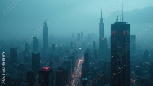 Fototapeta premium Cyberpunk Metropolis: A Rainy Night in the City