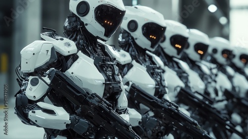 Fototapeta premium Cyberpunk military army robot squad with future advanced technology modern...