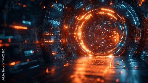 © MUMTAZ, Obraz premium Cyberpunk Neon Tunnel: A Digital Odyssey into the Future