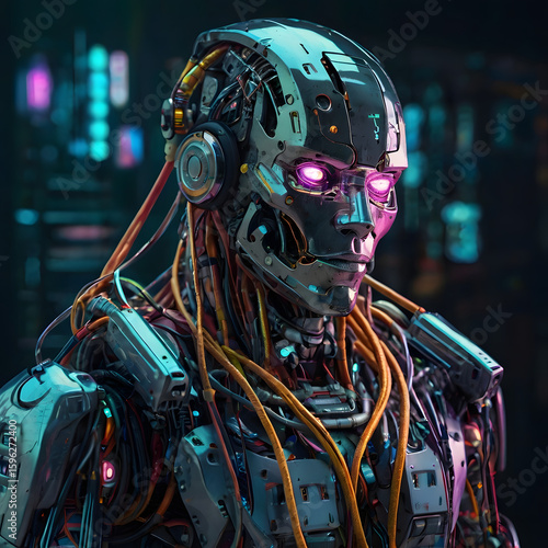 Fototapeta premium Cyberpunk robot head cables