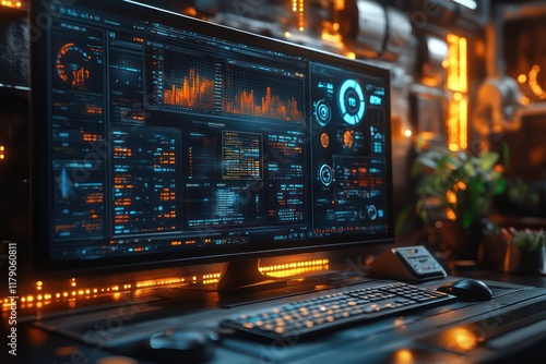Obraz premium Cyberpunk Tech Dashboard: Futuristic Digital Interface Display