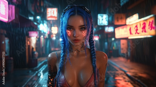 Fototapeta premium Cyberpunk Woman in Rain