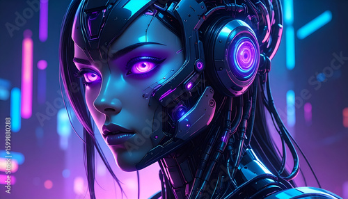 © kiki, Fototapeta premium Cyberpunk Woman with Neon City.